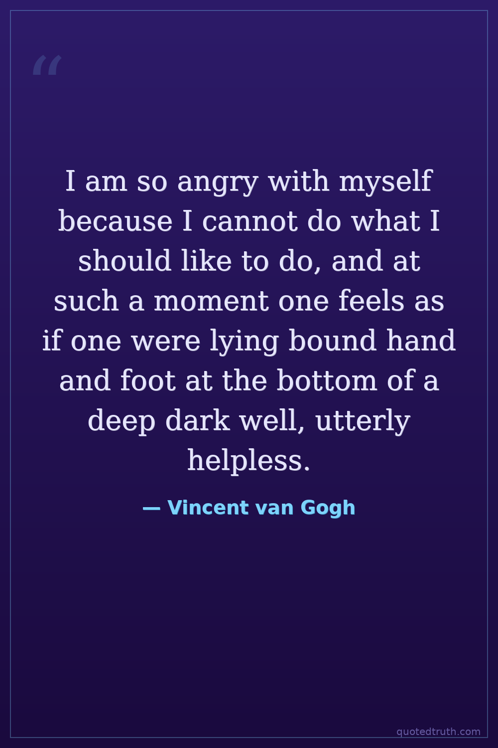 I am so angry with myself because I cannot do what I should like to do, and at such a moment one feels as if one were lying bound hand and foot at the bottom of a deep dark well, utterly helpless.