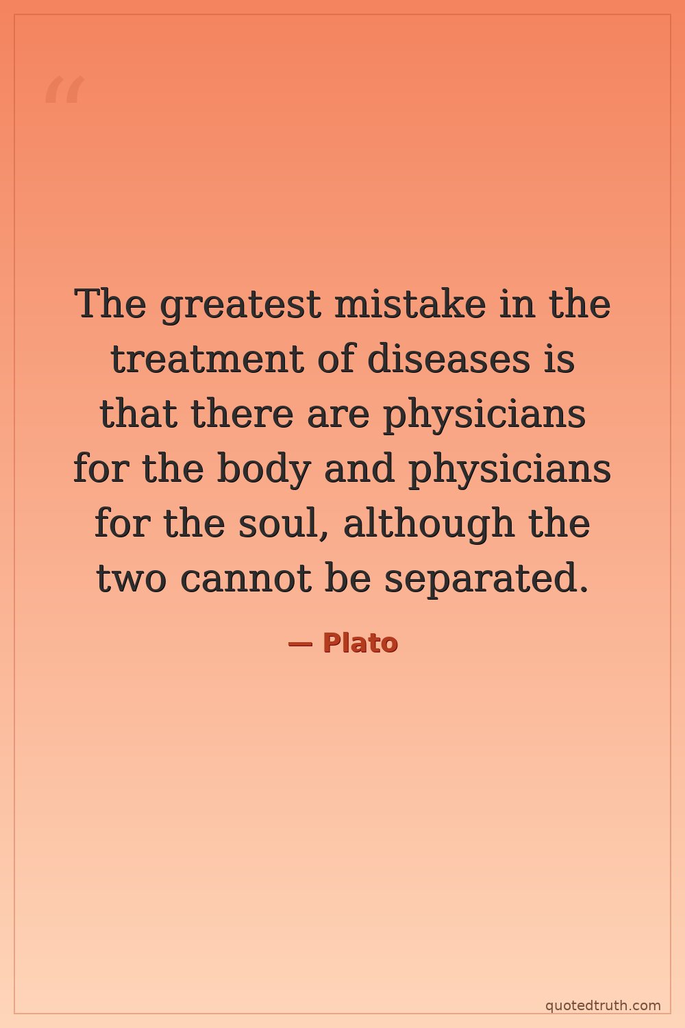 The greatest mistake in the treatment of diseases is that there are physicians for the body and physicians for the soul, although the two cannot be separated.