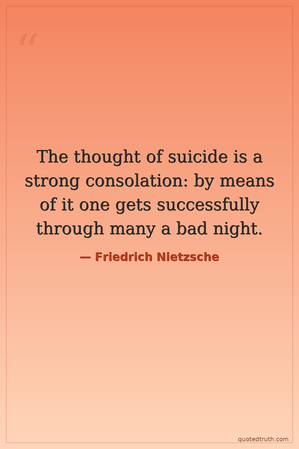 The thought of suicide is a strong consolation: by means of it one gets successfully through many a bad night.