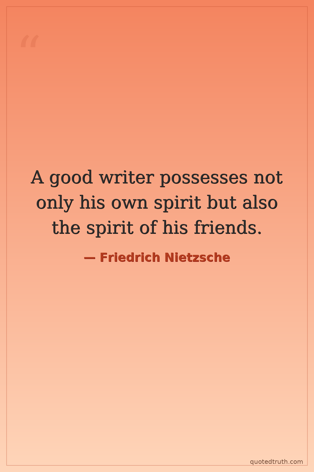 A good writer possesses not only his own spirit but also the spirit of his friends.