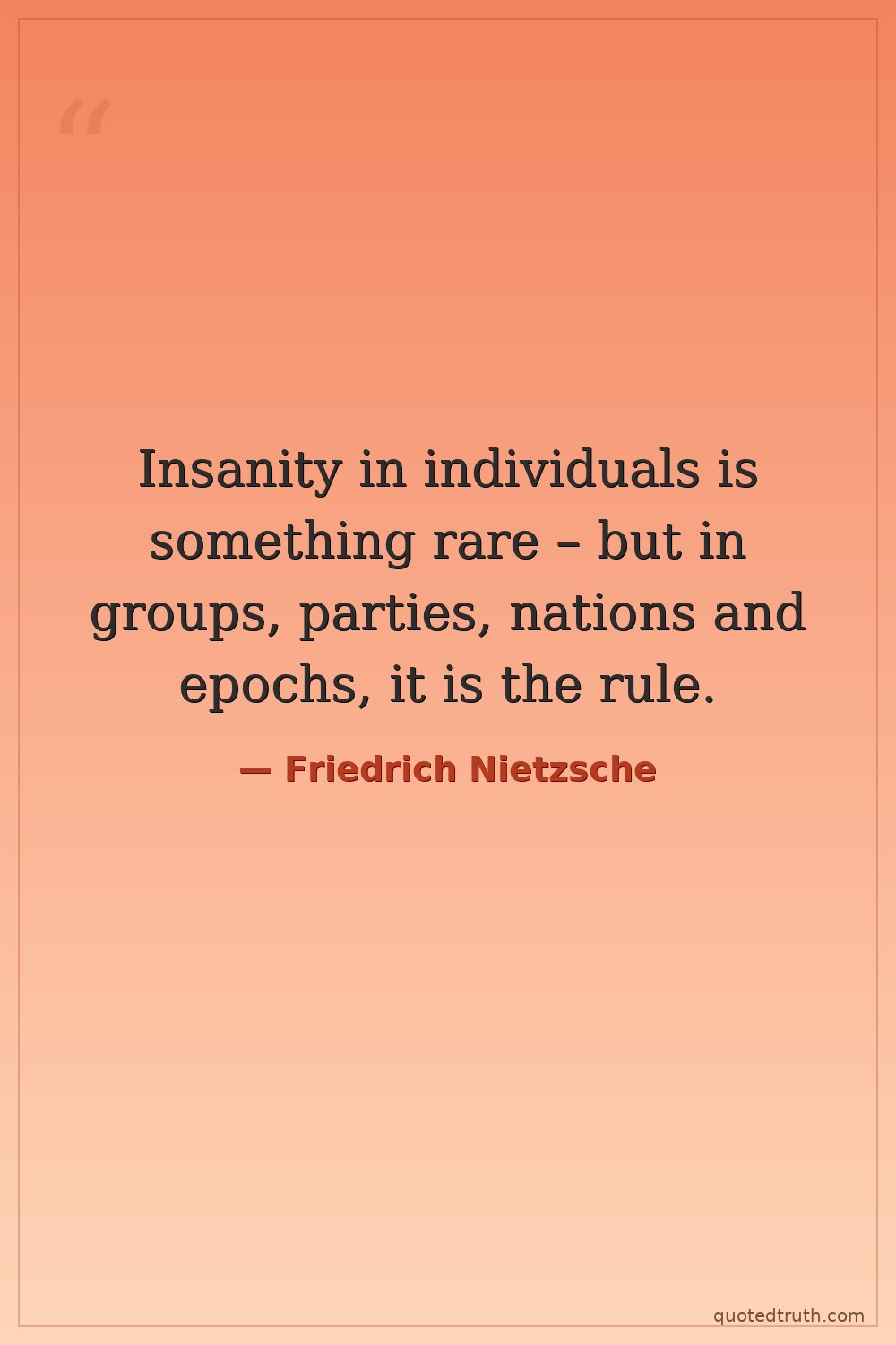 Insanity in individuals is something rare – but in groups, parties, nations and epochs, it is the rule.
