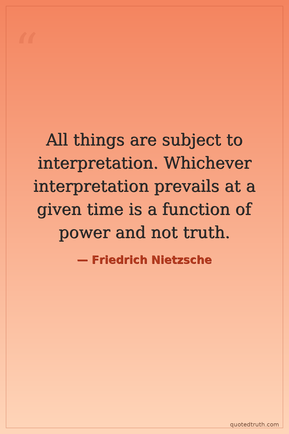 All things are subject to interpretation. Whichever interpretation prevails at a given time is a function of power and not truth.