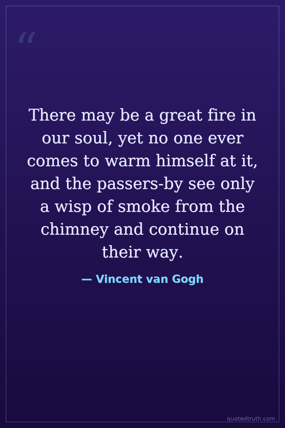 There may be a great fire in our soul, yet no one ever comes to warm himself at it, and the passers-by see only a wisp of smoke from the chimney and continue on their way.