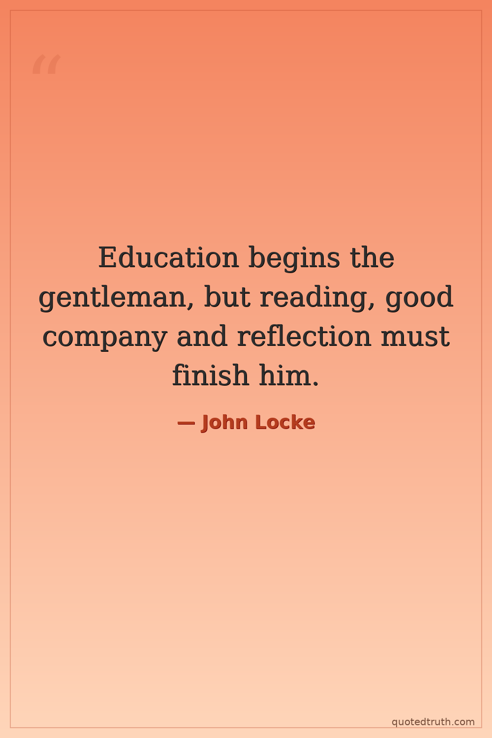 Education begins the gentleman, but reading, good company and reflection must finish him.