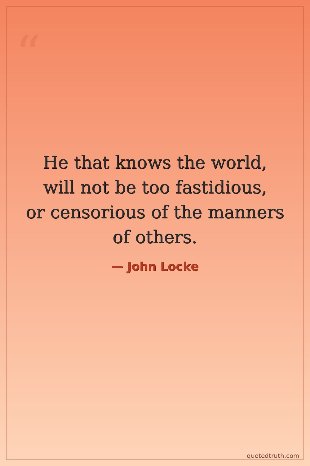 He that knows the world, will not be too fastidious, or censorious of the manners of others.