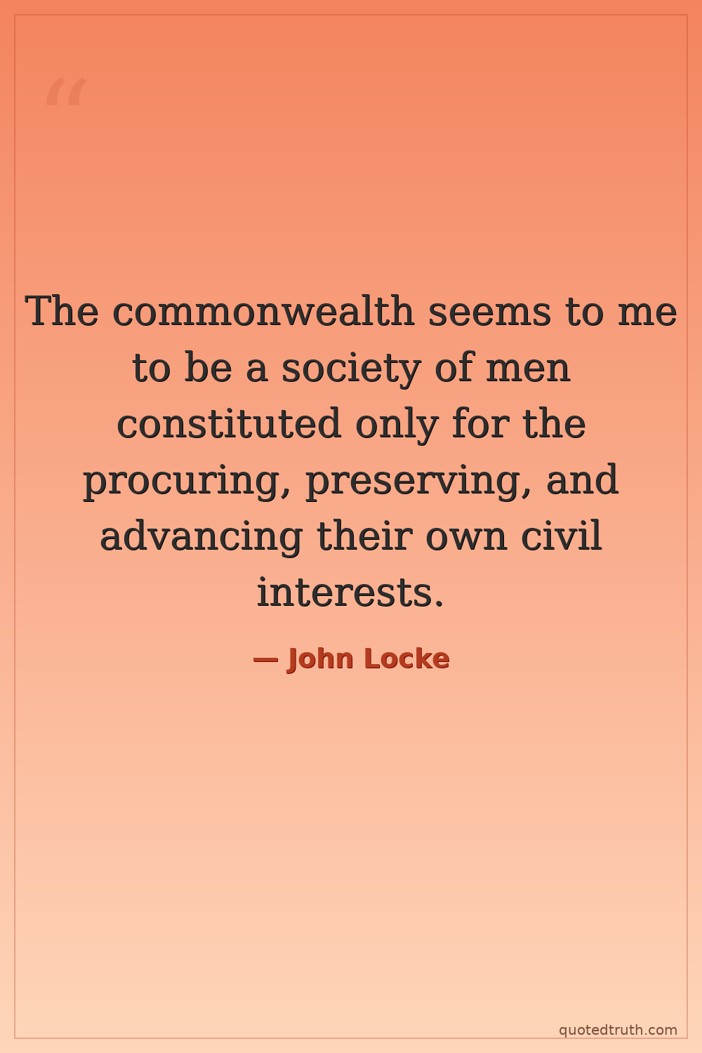 The commonwealth seems to me to be a society of men constituted only for the procuring, preserving, and advancing their own civil interests.