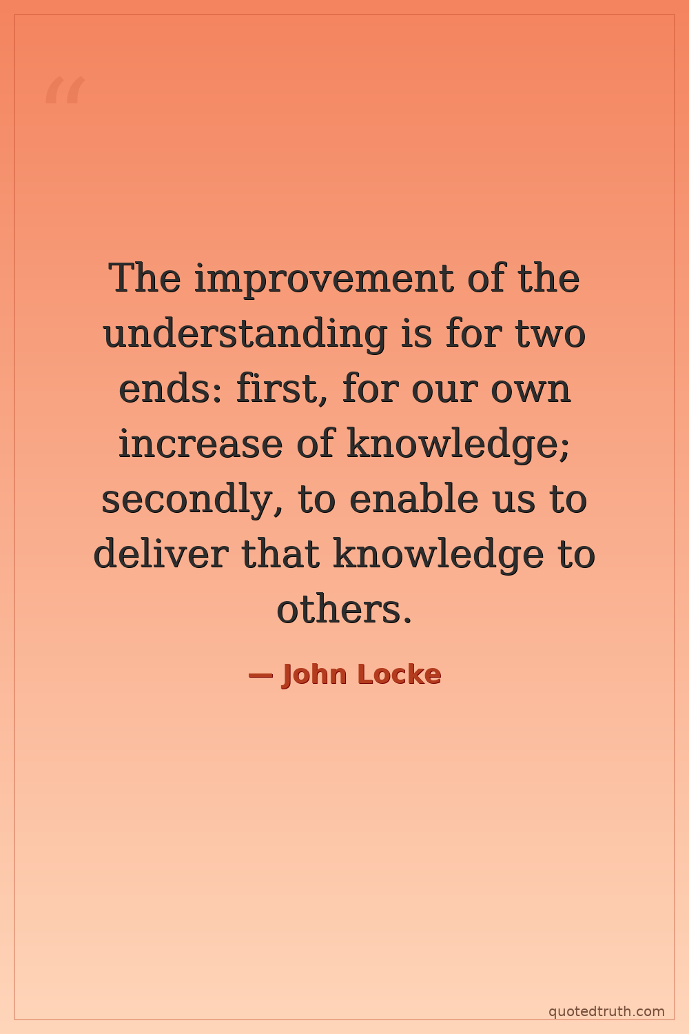 The improvement of the understanding is for two ends: first, for our own increase of knowledge; secondly, to enable us to deliver that knowledge to others.
