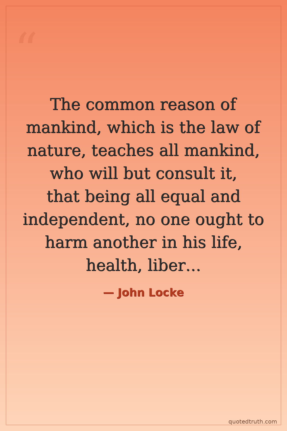 The common reason of mankind, which is the law of nature, teaches all mankind, who will but consult it, that being all equal and independent, no one ought to harm another in his life, health, liberty, or possessions.