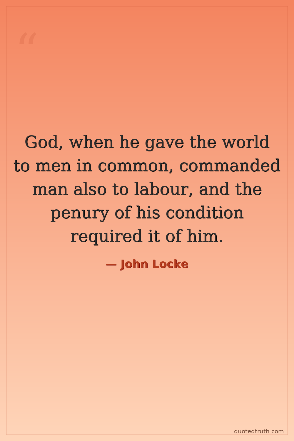 God, when he gave the world to men in common, commanded man also to labour, and the penury of his condition required it of him.