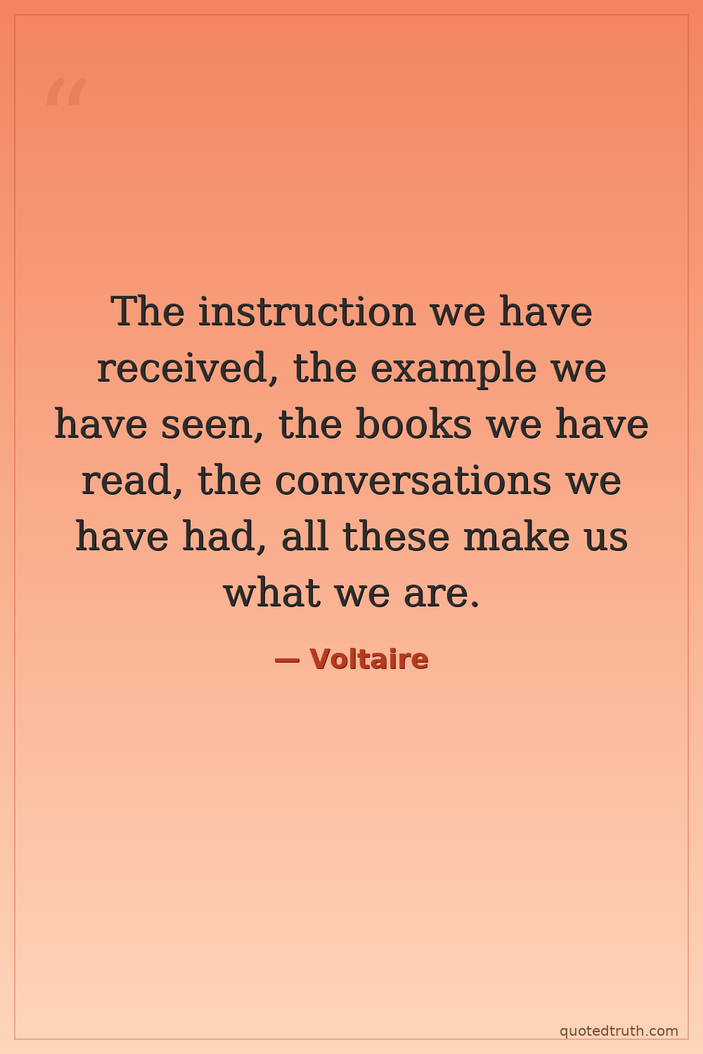 The instruction we have received, the example we have seen, the books we have read, the conversations we have had, all these make us what we are.