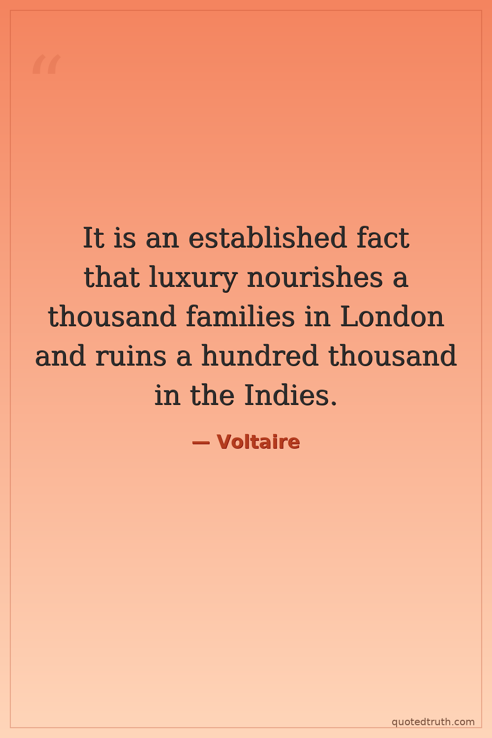 It is an established fact that luxury nourishes a thousand families in London and ruins a hundred thousand in the Indies.