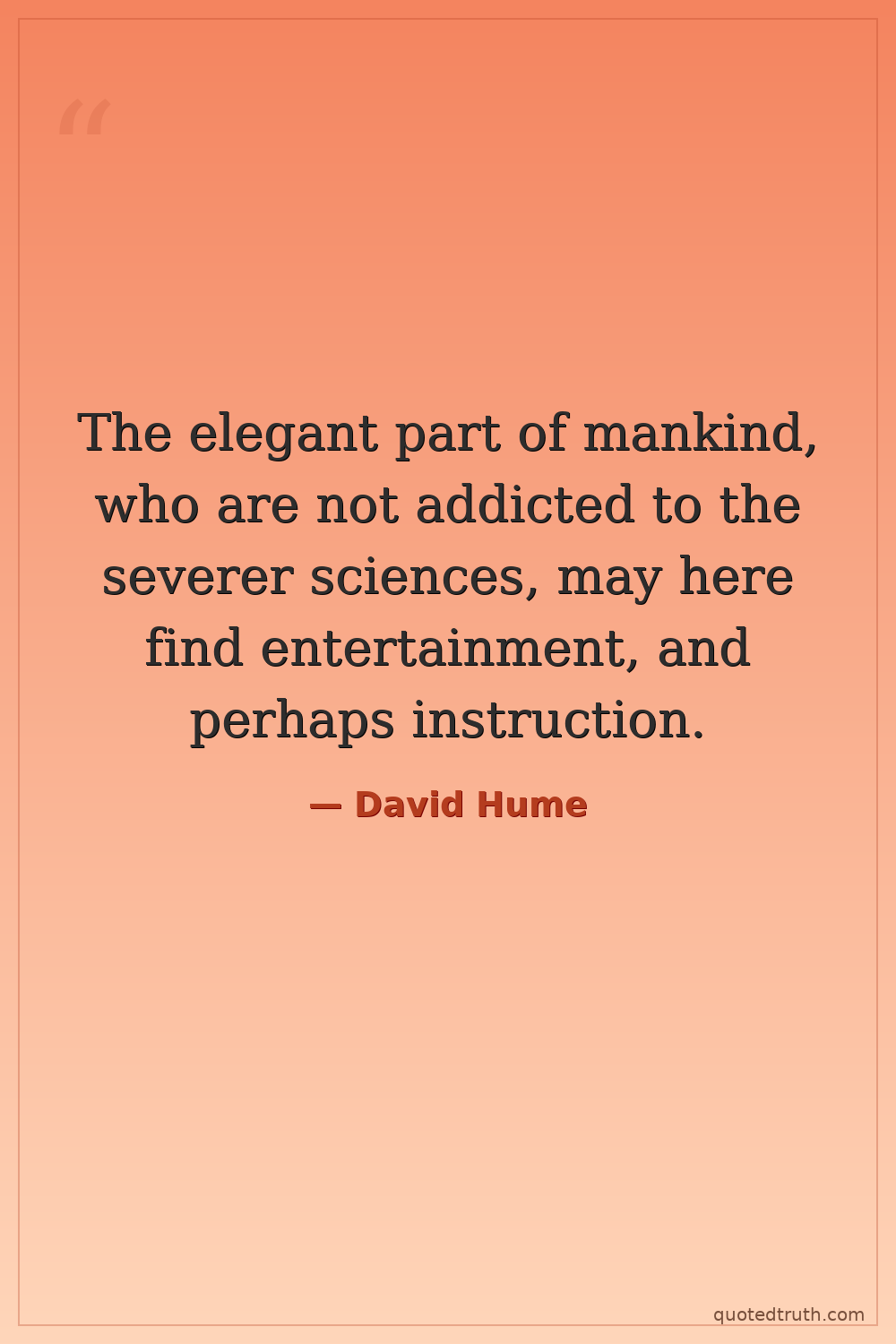 Humorous"The most perfect philosophy of the natural kind only staves off our ignorance a little longer: as perhaps the most perfect philosophy of the moral or metaphysical kind serves only to discover more ope…"