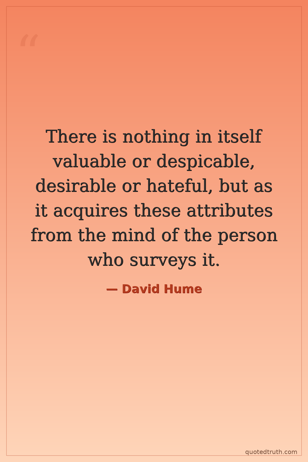 There is nothing in itself valuable or despicable, desirable or hateful, but as it acquires these attributes from the mind of the person who surveys it.