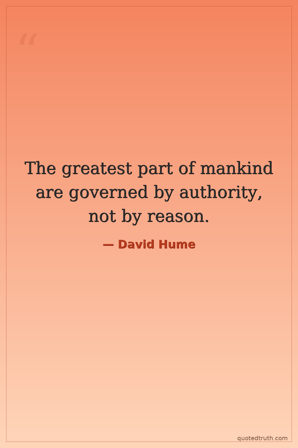 The greatest part of mankind are governed by authority, not by reason.