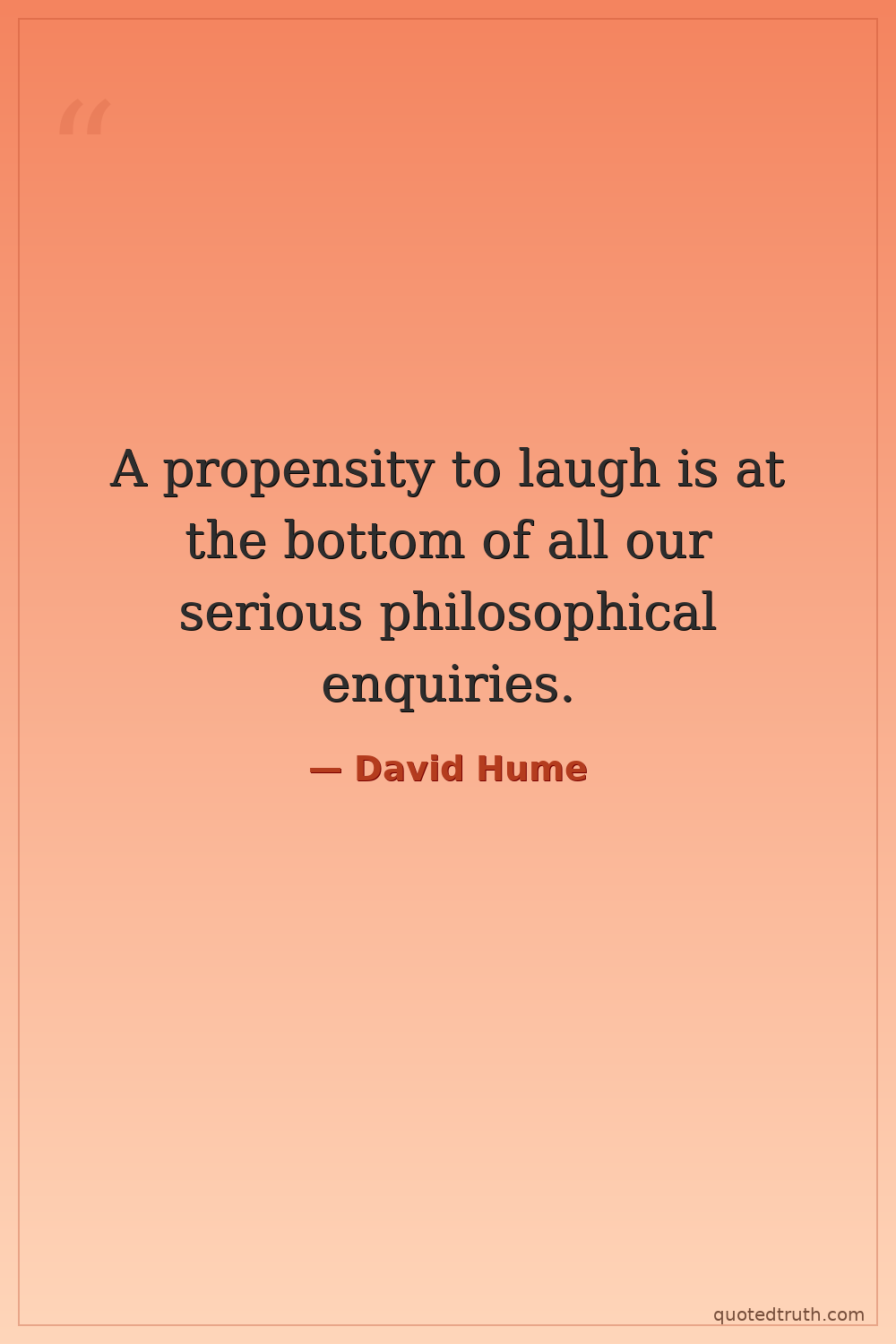 A propensity to laugh is at the bottom of all our serious philosophical enquiries.