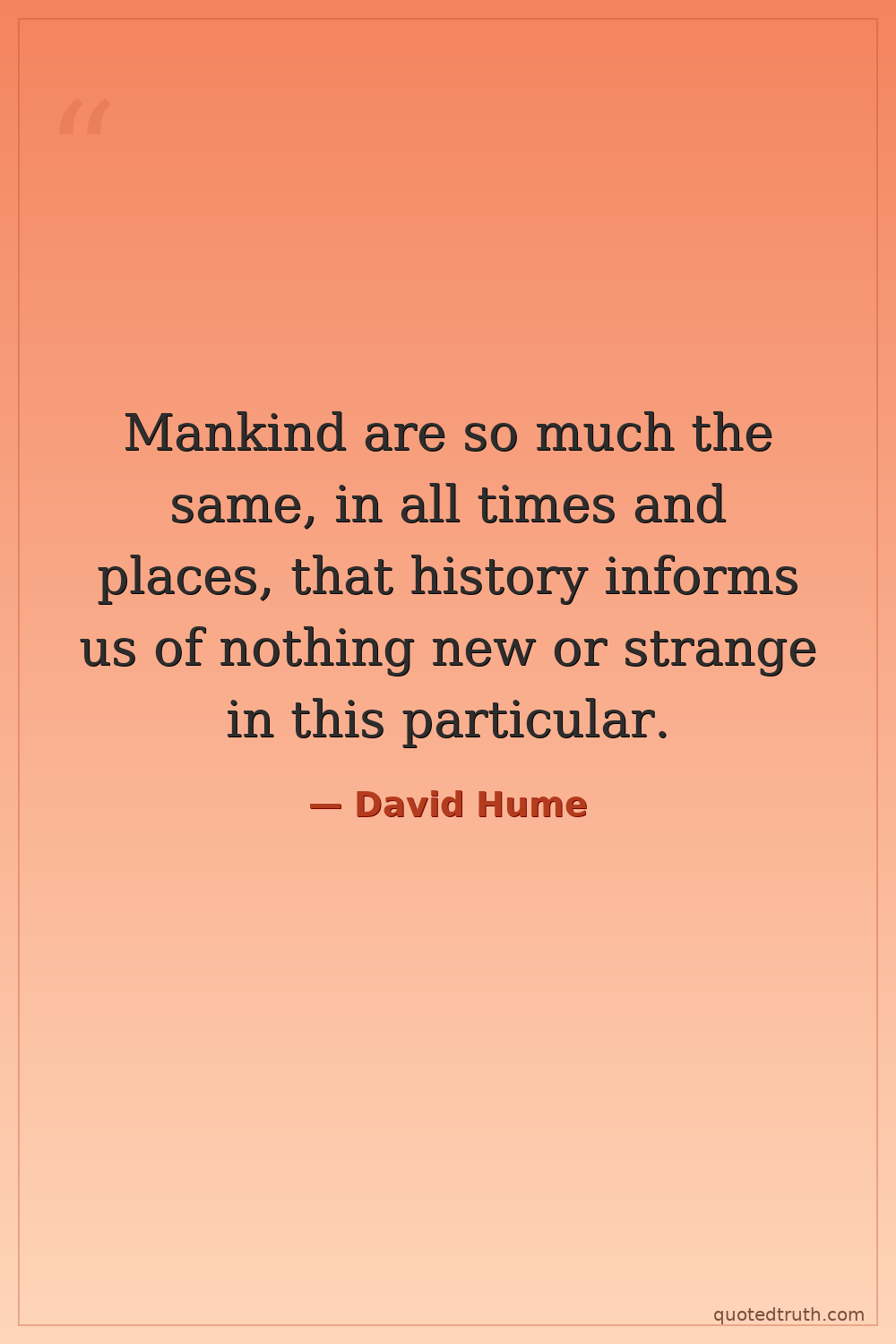 Mankind are so much the same, in all times and places, that history informs us of nothing new or strange in this particular.