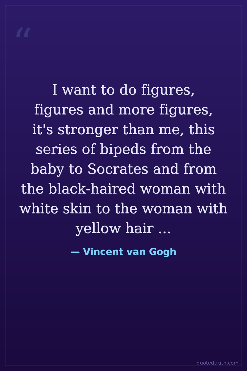 I want to do figures, figures and more figures, it's stronger than me, this series of bipeds from the baby to Socrates and from the black-haired woman with white skin to the woman with yellow hair and a sunburnt face the color of brick. — Vincent van Gogh Modern Post-impressionist painter
