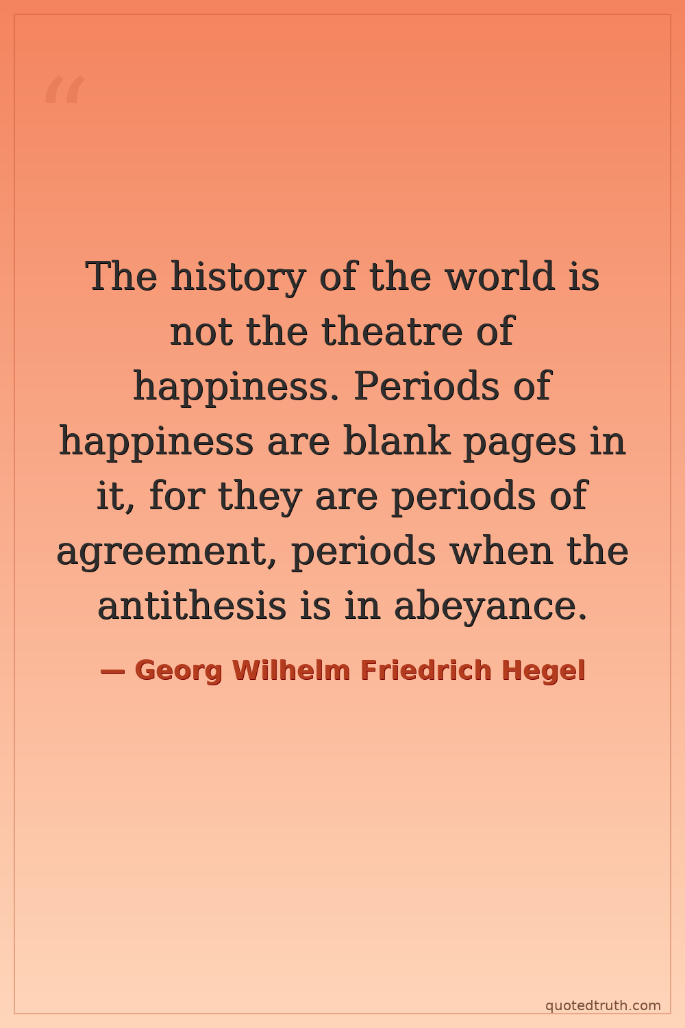 The history of the world is not the theatre of happiness. Periods of happiness are blank pages in it, for they are periods of agreement, periods when the antithesis is in abeyance.