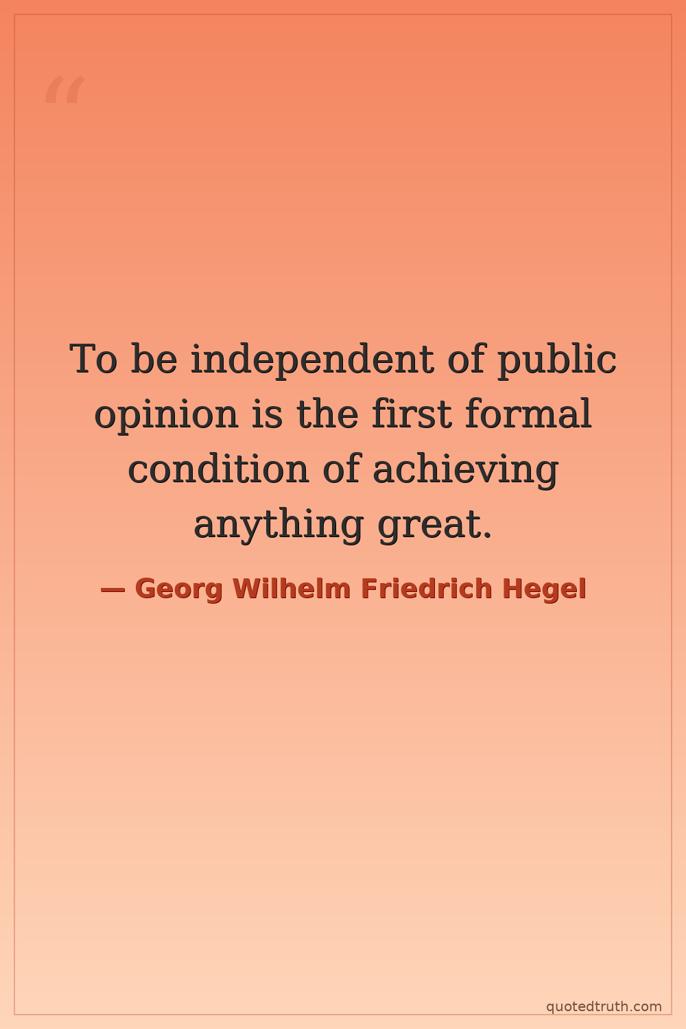To be independent of public opinion is the first formal condition of achieving anything great.