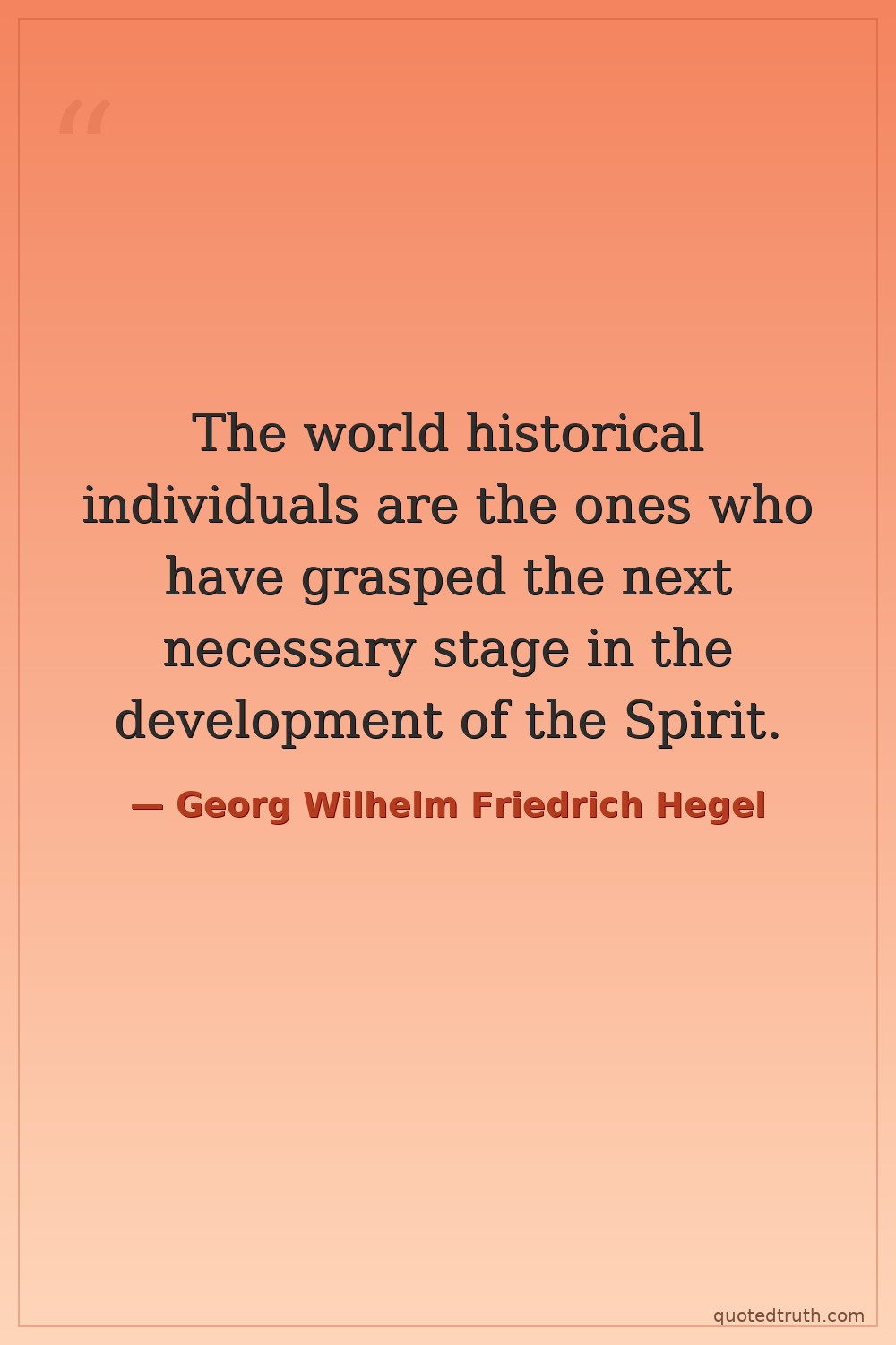 The world historical individuals are the ones who have grasped the next necessary stage in the development of the Spirit.
