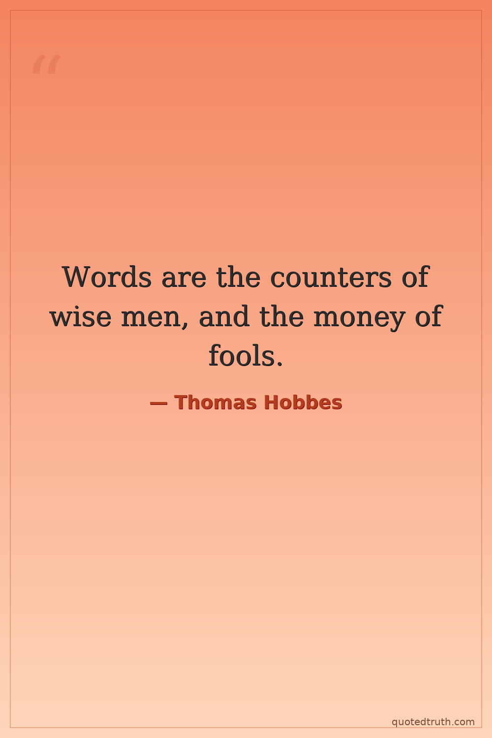 Words are the counters of wise men, and the money of fools.