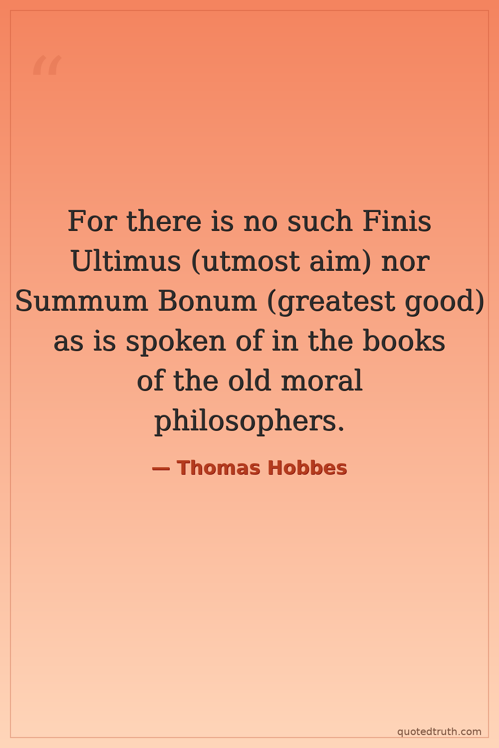 For there is no such Finis Ultimus (utmost aim) nor Summum Bonum (greatest good) as is spoken of in the books of the old moral philosophers.