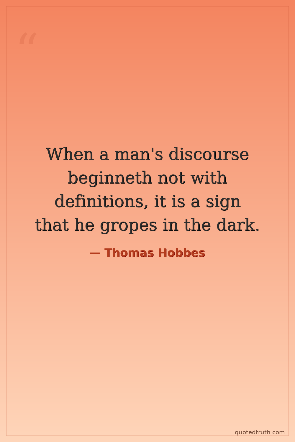 When a man's discourse beginneth not with definitions, it is a sign that he gropes in the dark.