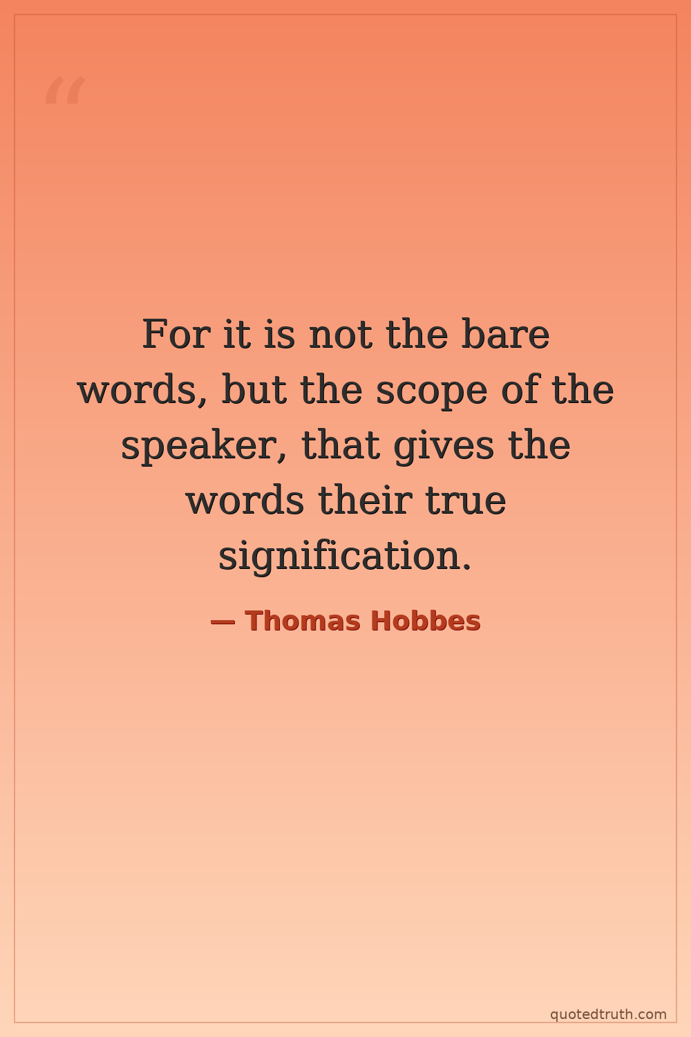 For it is not the bare words, but the scope of the speaker, that gives the words their true signification.