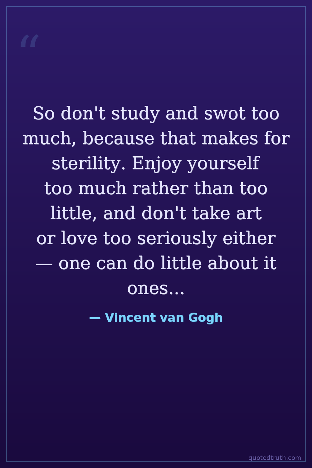 So don't study and swot too much, because that makes for sterility. Enjoy yourself too much rather than too little, and don't take art or love too seriously either — one can do little about it oneself, it's mostly a matter of temperament.