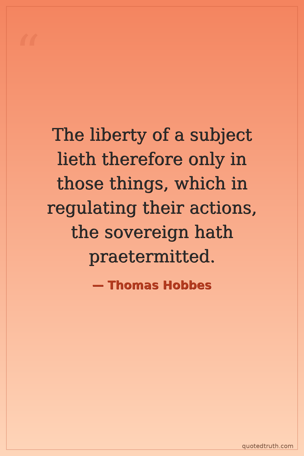 The liberty of a subject lieth therefore only in those things, which in regulating their actions, the sovereign hath praetermitted.