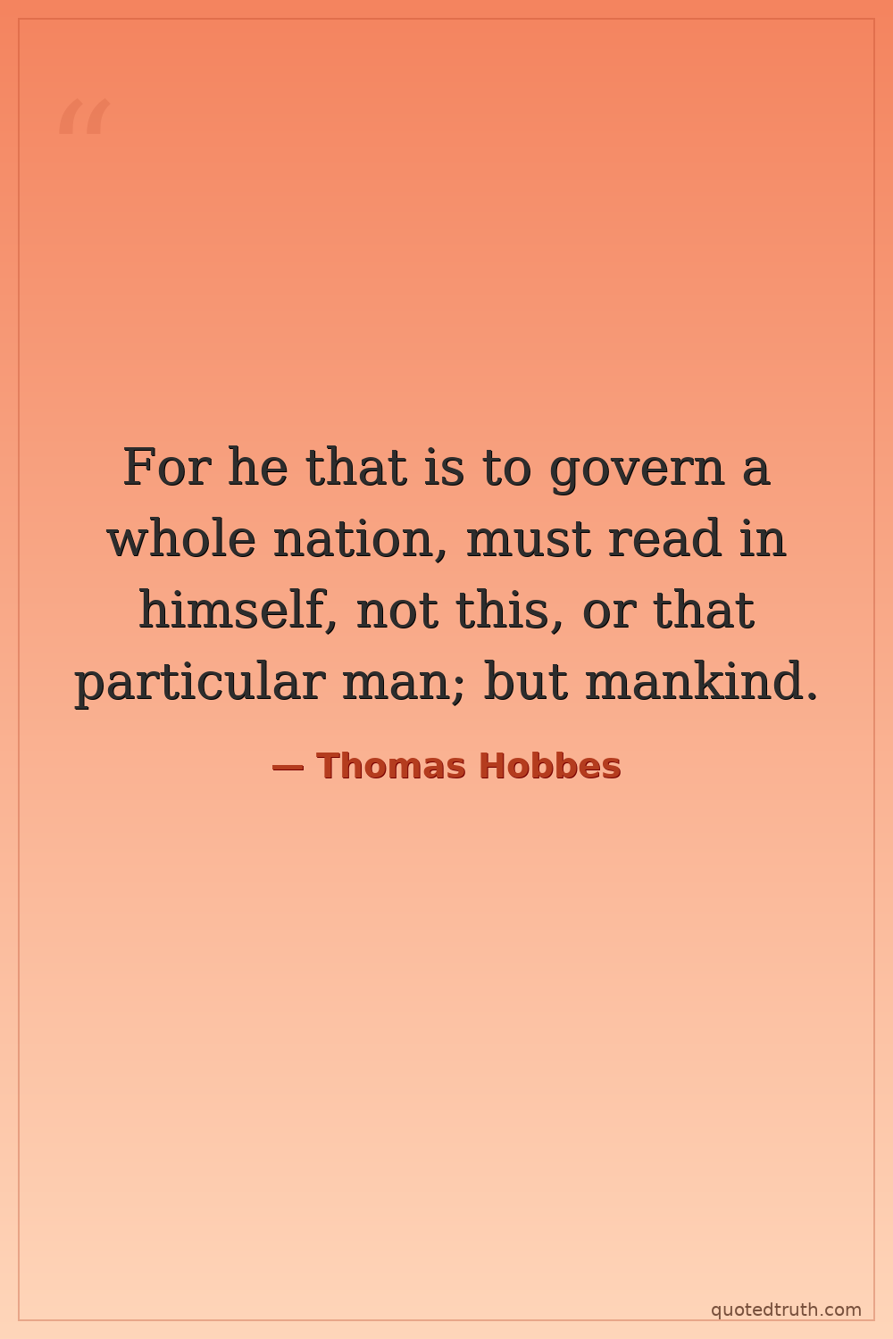 For he that is to govern a whole nation, must read in himself, not this, or that particular man; but mankind.