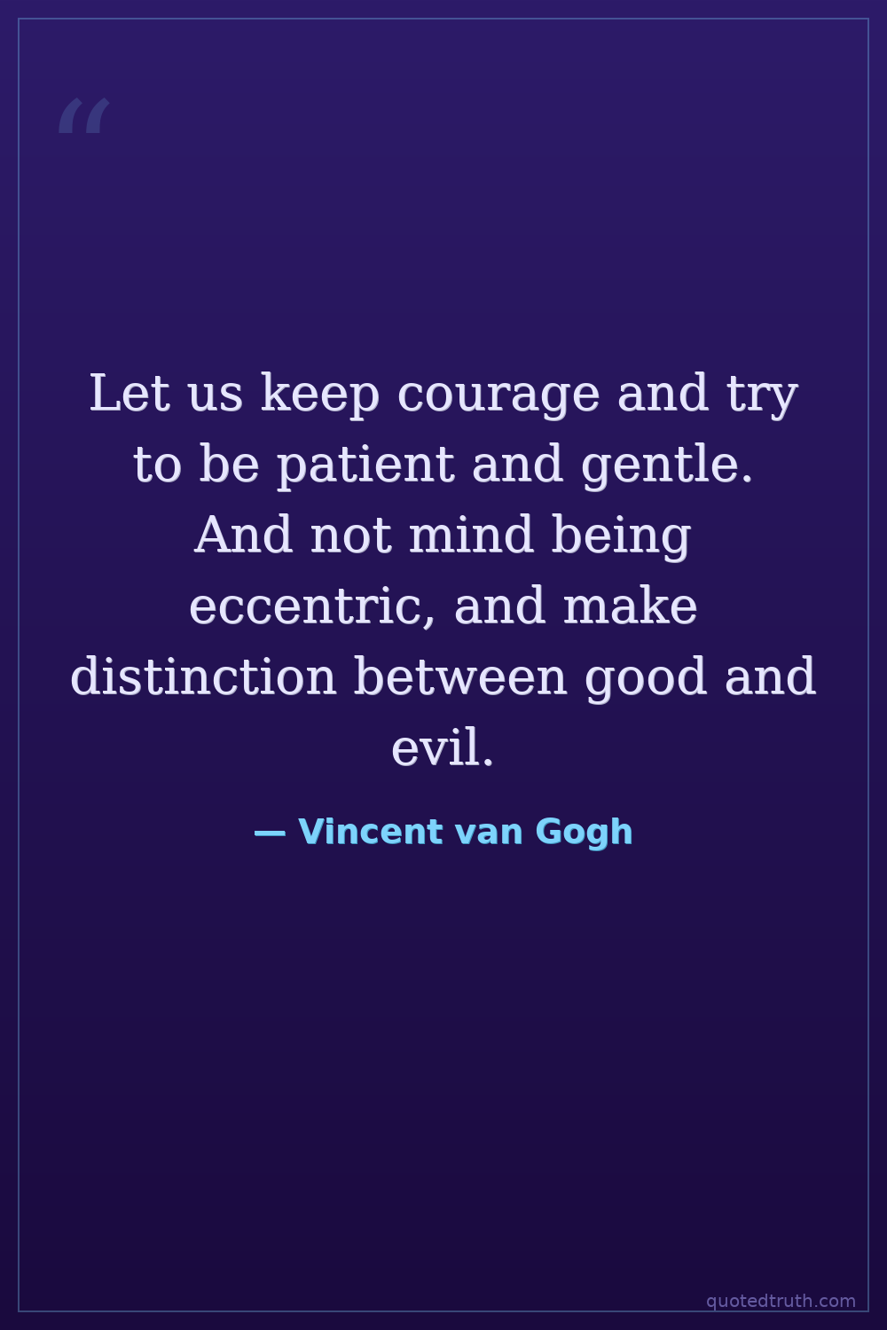 Let us keep courage and try to be patient and gentle. And not mind being eccentric, and make distinction between good and evil.