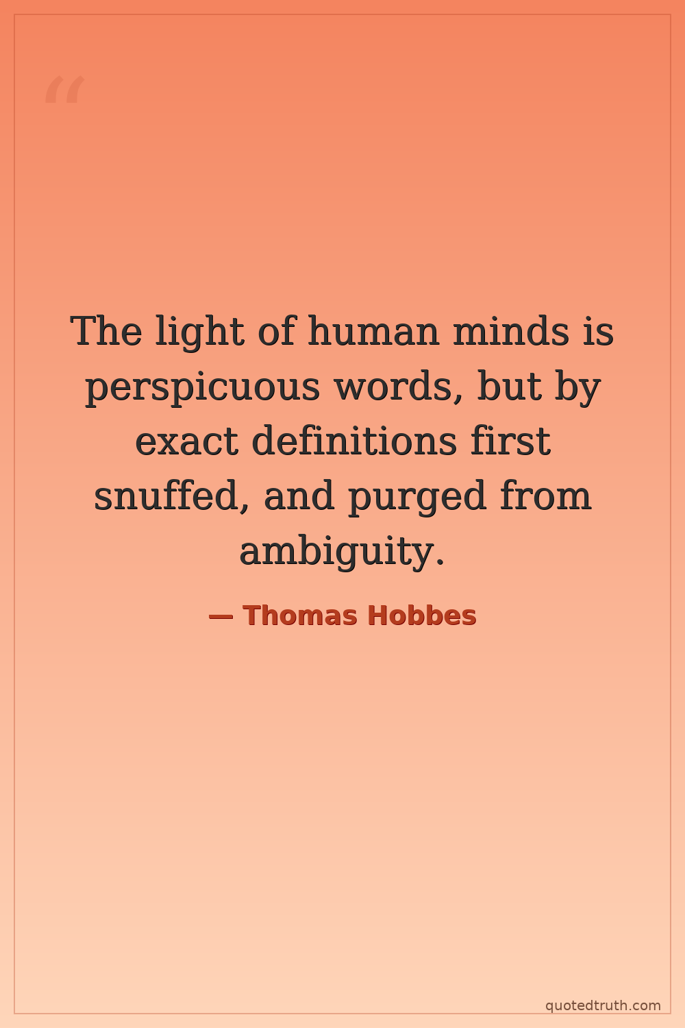 The light of human minds is perspicuous words, but by exact definitions first snuffed, and purged from ambiguity.