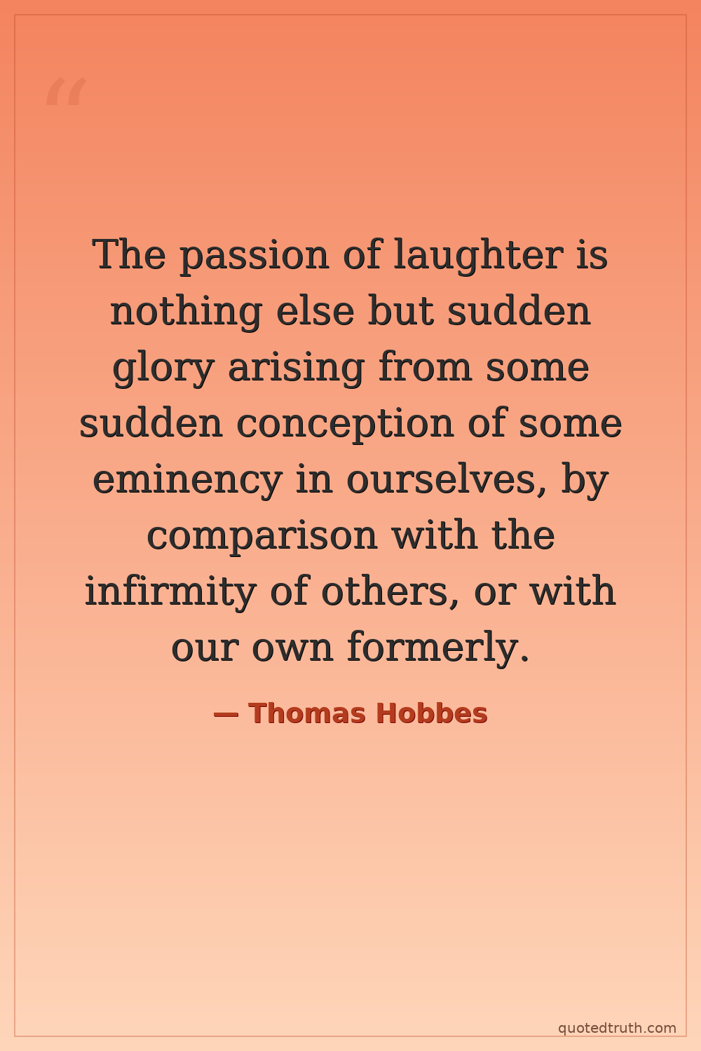 The passion of laughter is nothing else but sudden glory arising from some sudden conception of some eminency in ourselves, by comparison with the infirmity of others, or with our own formerly.