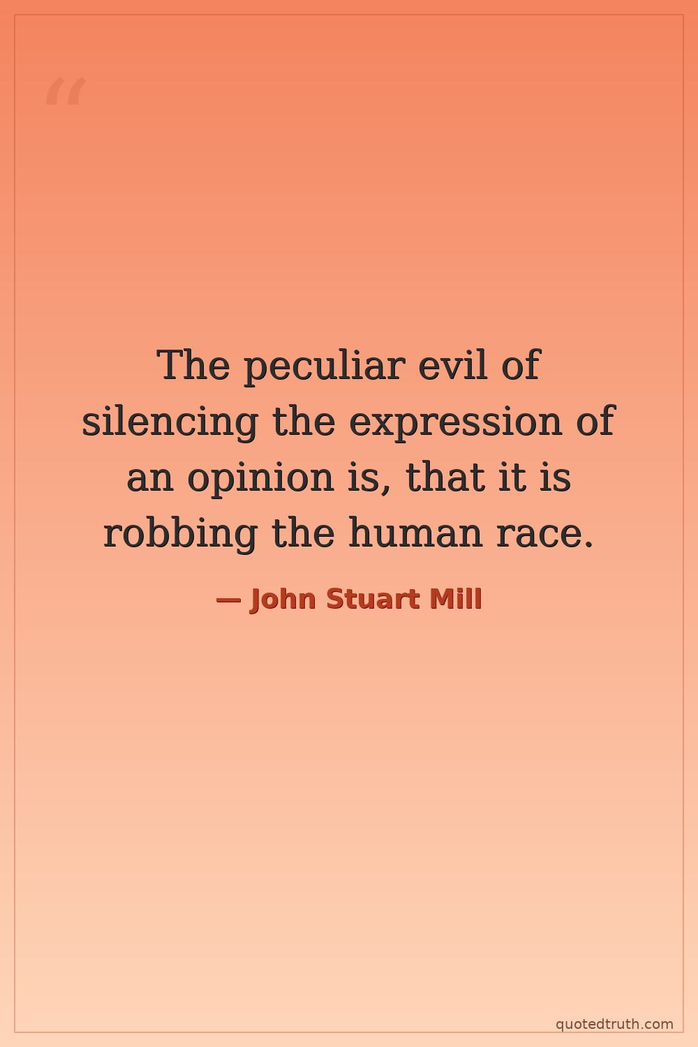 The peculiar evil of silencing the expression of an opinion is, that it is robbing the human race.