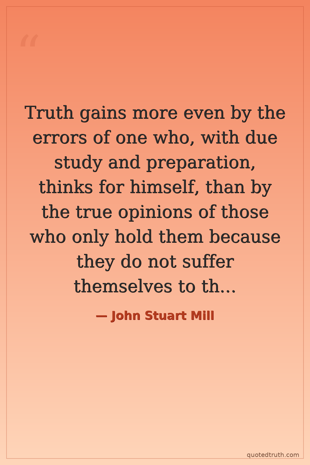Truth gains more even by the errors of one who, with due study and preparation, thinks for himself, than by the true opinions of those who only hold them because they do not suffer themselves to think.
