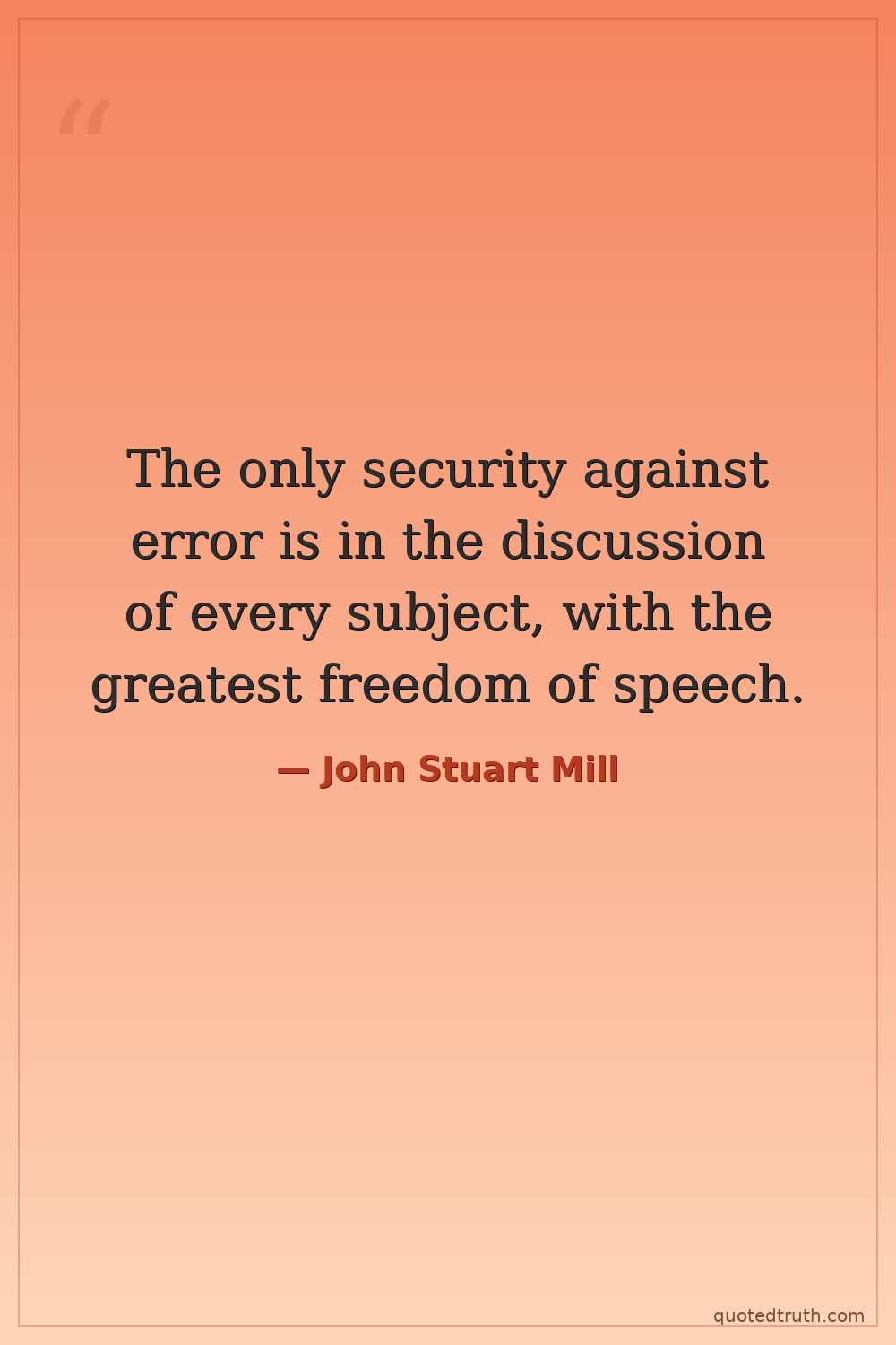 The only security against error is in the discussion of every subject, with the greatest freedom of speech.