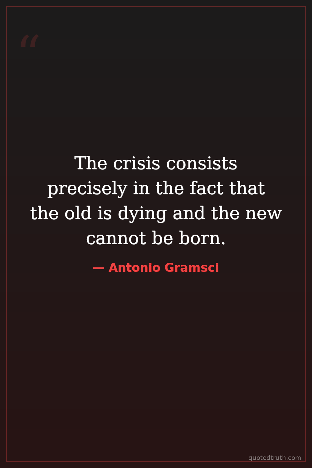 The crisis consists precisely in the fact that the old is dying and the new cannot be born.