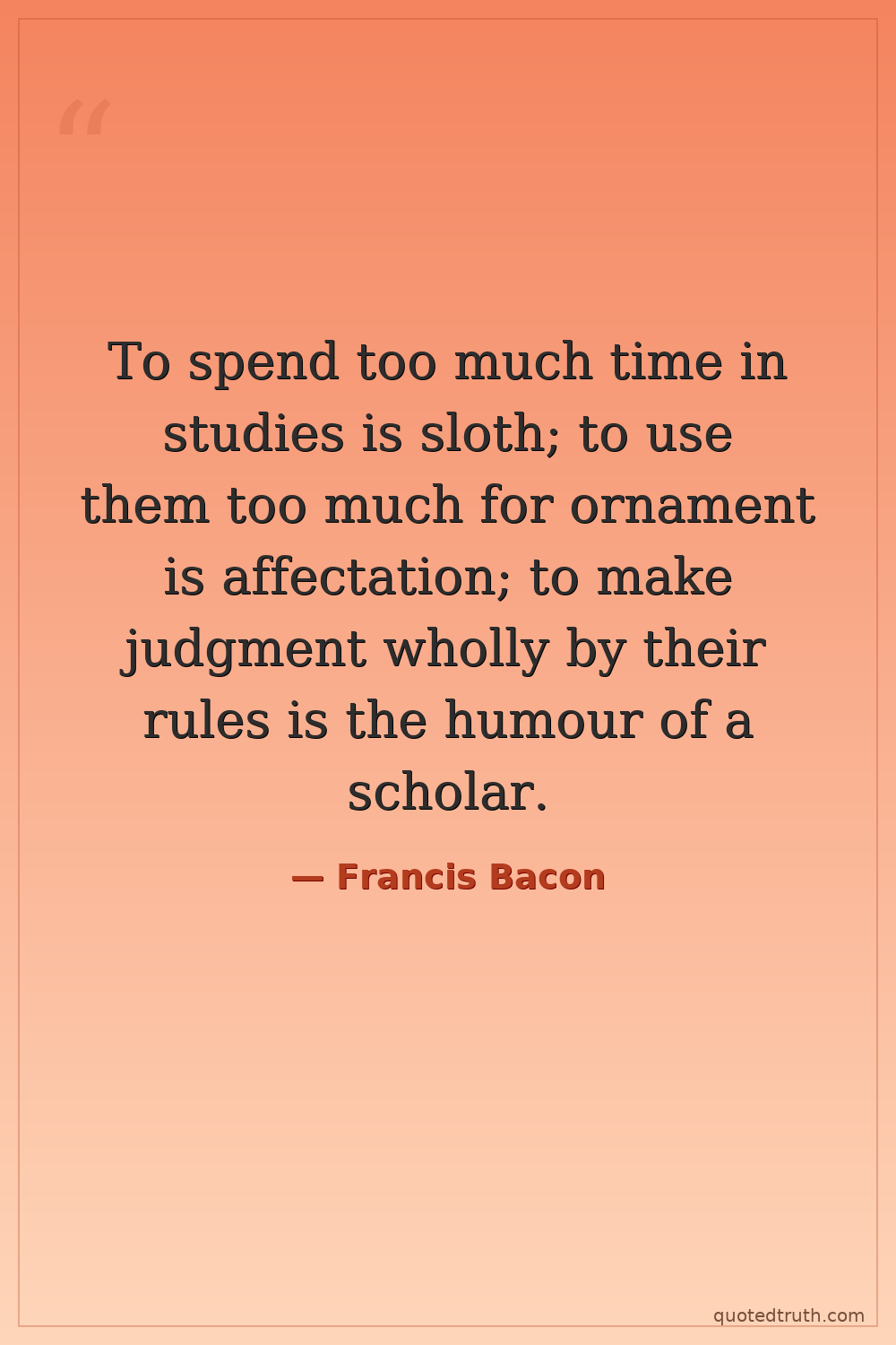 To spend too much time in studies is sloth; to use them too much for ornament is affectation; to make judgment wholly by their rules is the humour of a scholar.