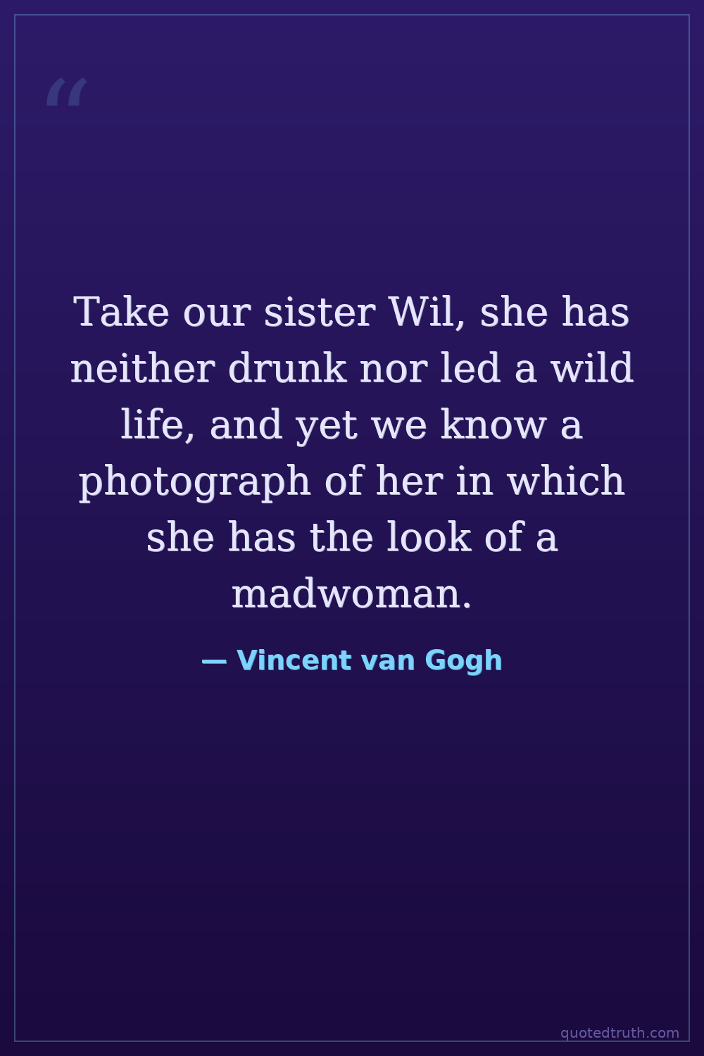 Take our sister Wil, she has neither drunk nor led a wild life, and yet we know a photograph of her in which she has the look of a madwoman.