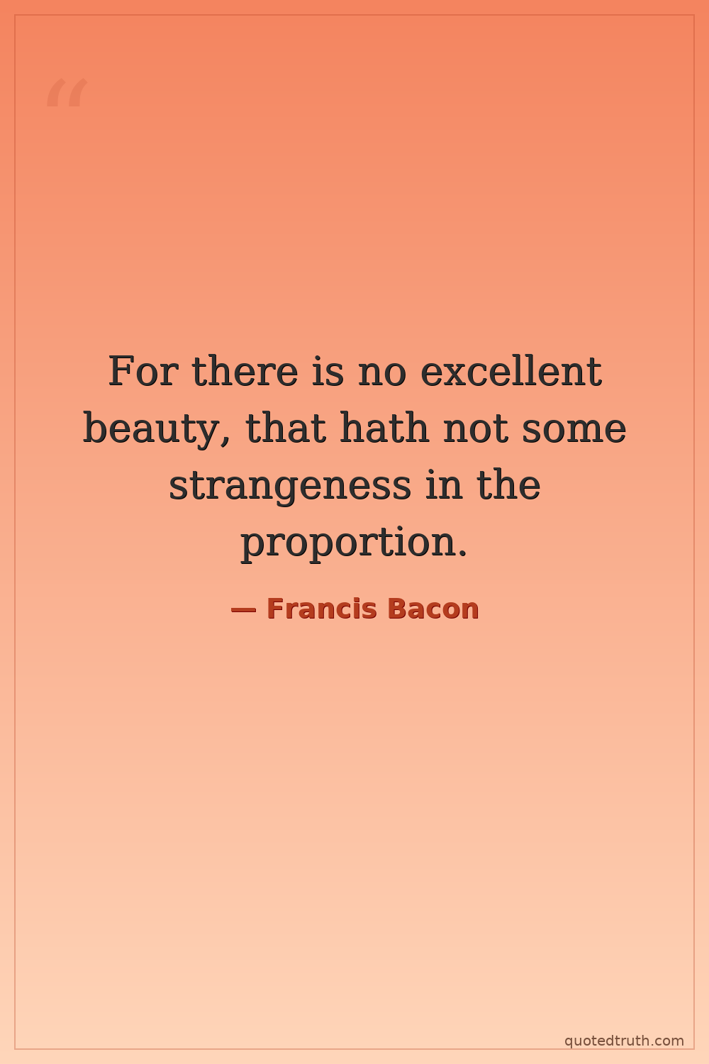 For there is no excellent beauty, that hath not some strangeness in the proportion.