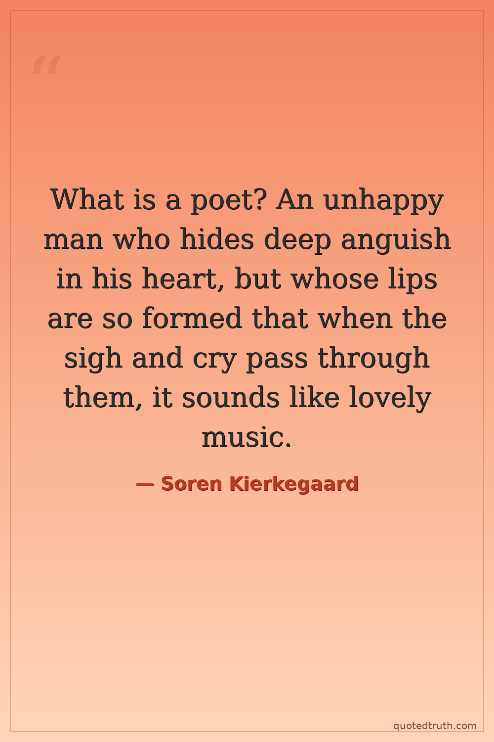 What is a poet? An unhappy man who hides deep anguish in his heart, but whose lips are so formed that when the sigh and cry pass through them, it sounds like lovely music.