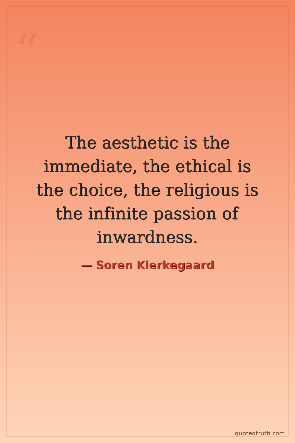 The aesthetic is the immediate, the ethical is the choice, the religious is the infinite passion of inwardness.