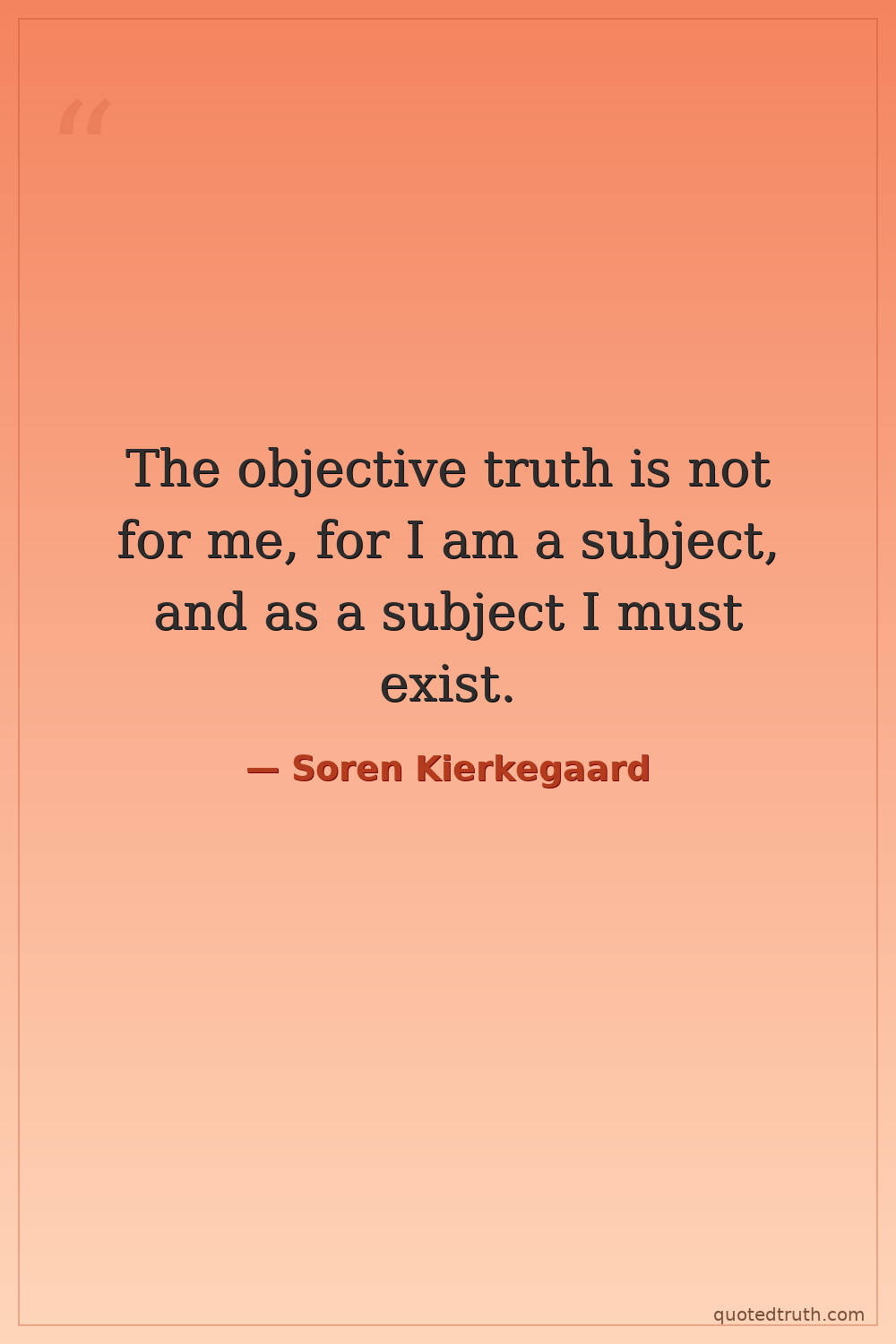 The objective truth is not for me, for I am a subject, and as a subject I must exist.