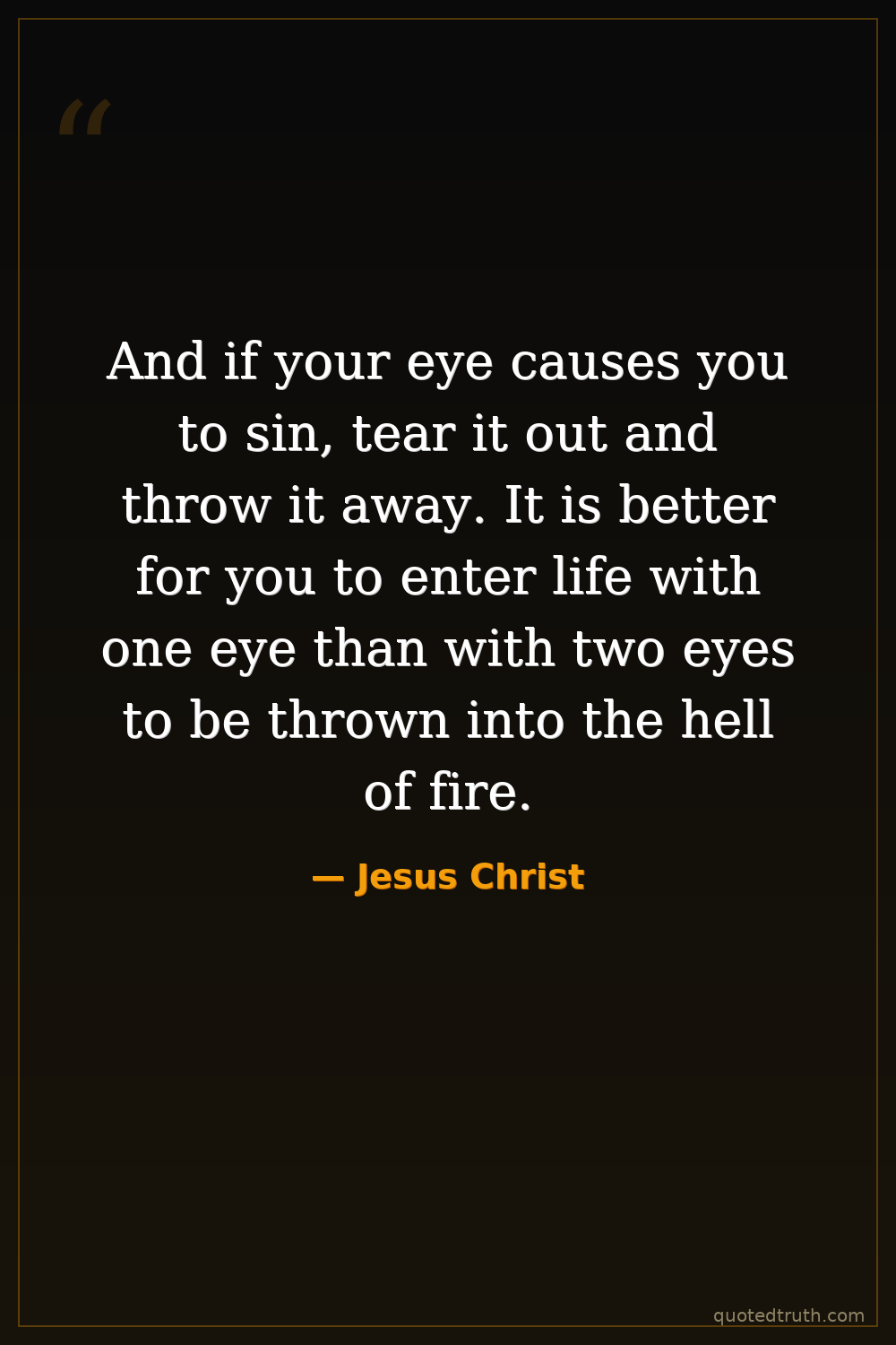 And if your eye causes you to sin, tear it out and throw it away. It is better for you to enter life with one eye than with two eyes to be thrown into the hell of fire.