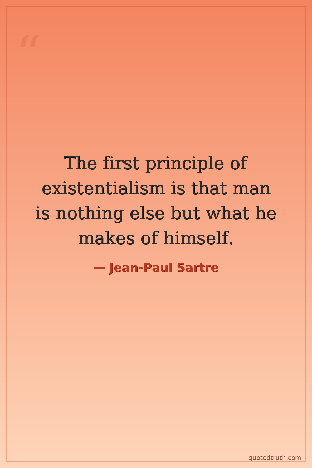 The first principle of existentialism is that man is nothing else but what he makes of himself.
