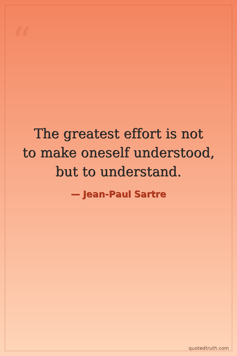 The greatest effort is not to make oneself understood, but to understand.