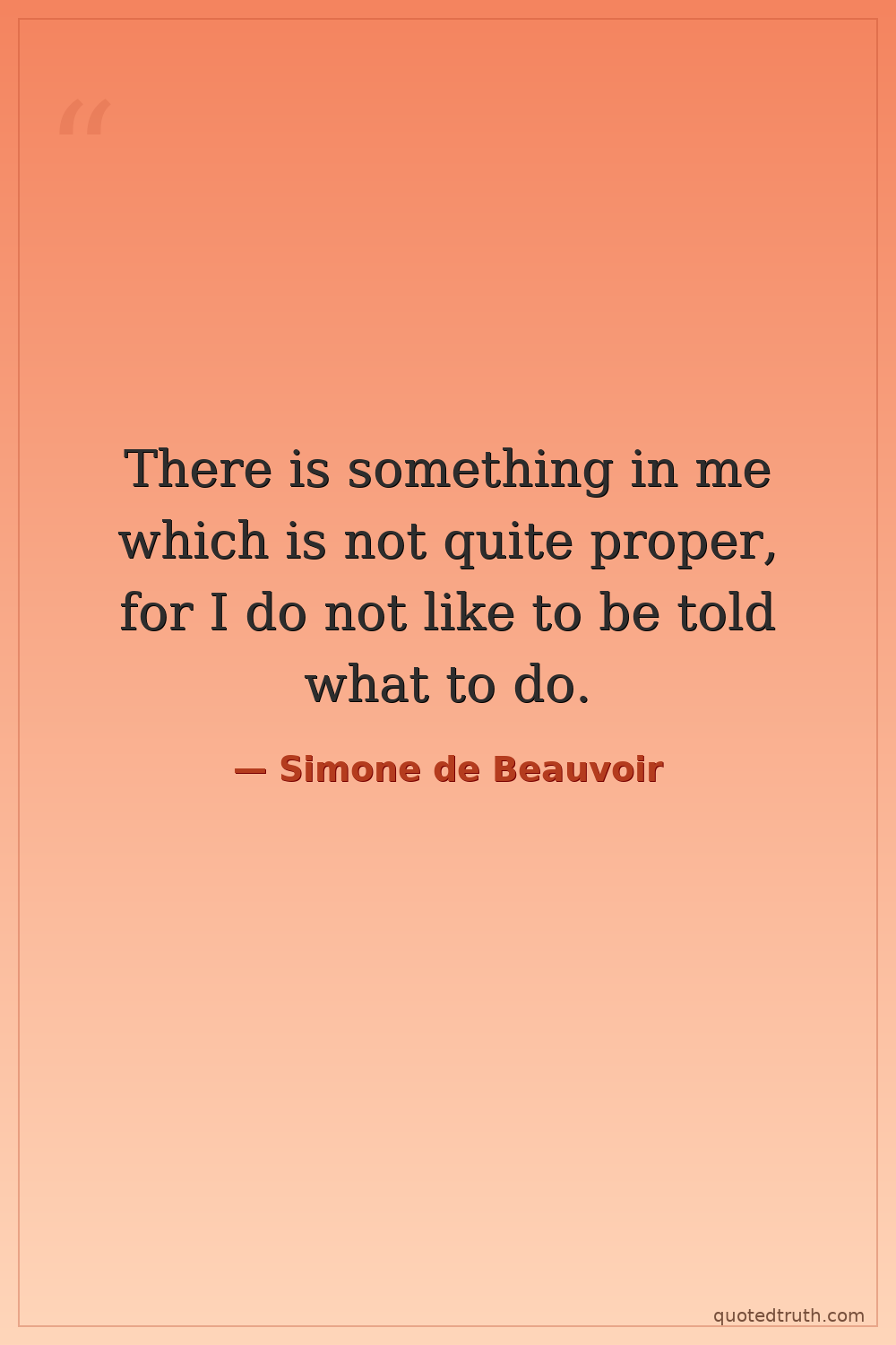 There is something in me which is not quite proper, for I do not like to be told what to do.