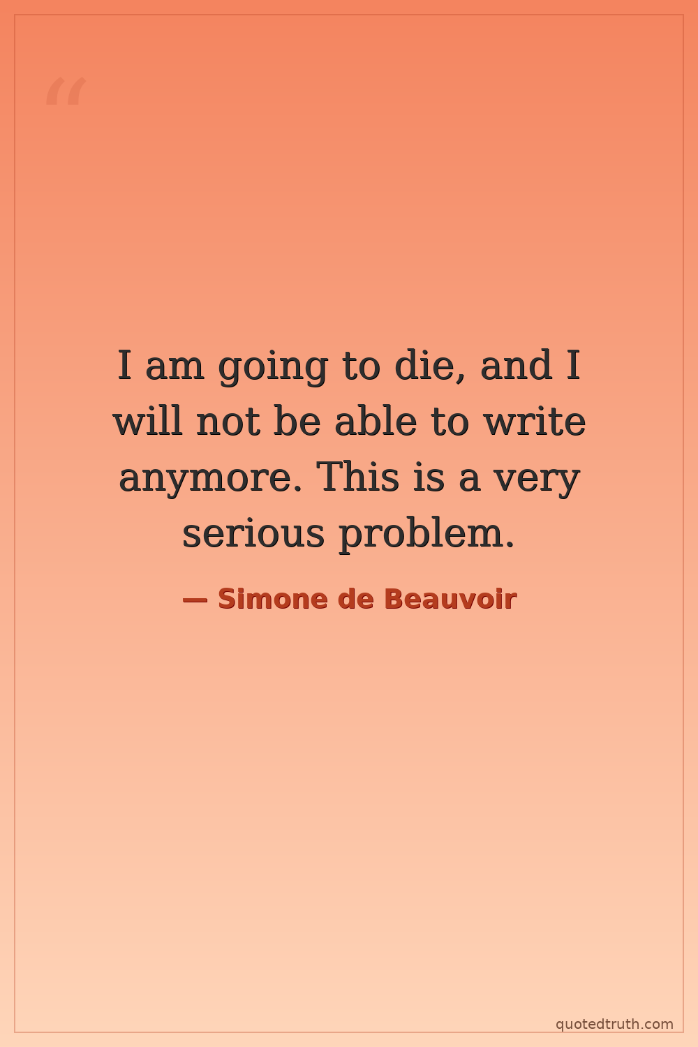 I am going to die, and I will not be able to write anymore. This is a very serious problem.