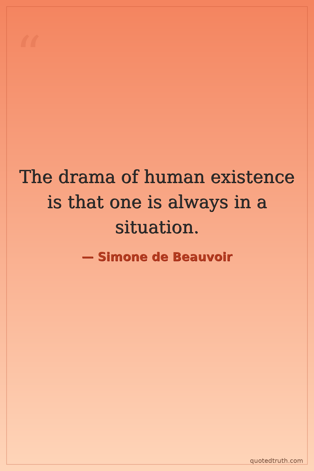 The drama of human existence is that one is always in a situation.